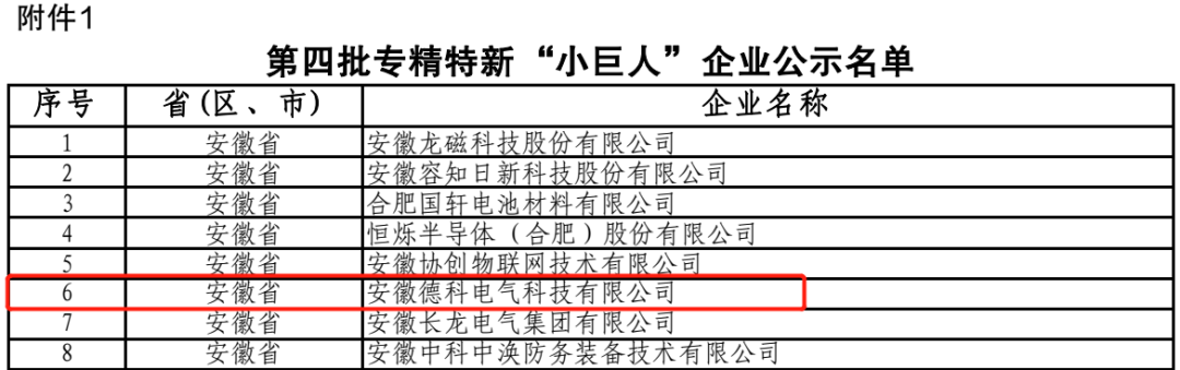 2018年11月,国家工信部发文明确了专精特新“小巨人”企业是“专精特新”中小企业中的佼佼者,是“专注于细分市场、创新能力强、市场占有率高、掌握关键核心技术、质量效益优的排头兵企业”。2022年8月,德科电气成功入选第四批专精特新“小巨人”,截止22年8月,全国专精特新“小巨人”总计4357家。