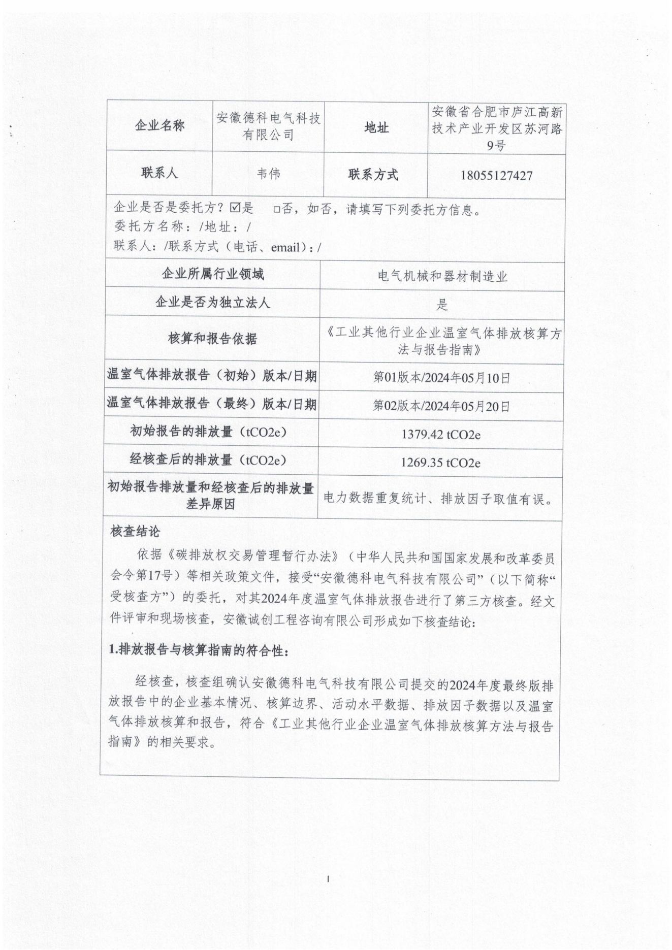 2024年德科电气温室气体排放核查报告