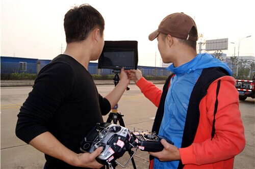 地面上,安徽海臻天文化传媒的技术人员熟练地操控着遥控器,遥控飞机上装载着高清摄像机,地面设有视频终端,显示器里正在直播航拍的图像。无人机“听话”地攀升着,在上百米的高度悬停,“俯拍”着德科电气厂区及整个庐江城西开发区。