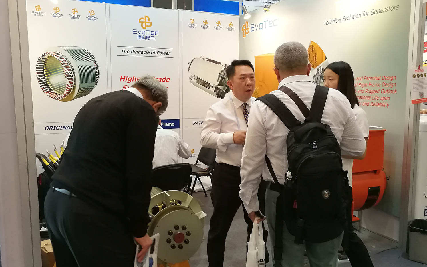 德科电气作为中国知名发电机品牌制造商,对技术和质量的追求从未止步。秉承着高质量、高服务、以用户需求为导向的产品战略,自主研发的发电机产品一直深受市场好评,远销全球30多个国家和地区。本次广交会现场,EvoTec展台人潮涌动。